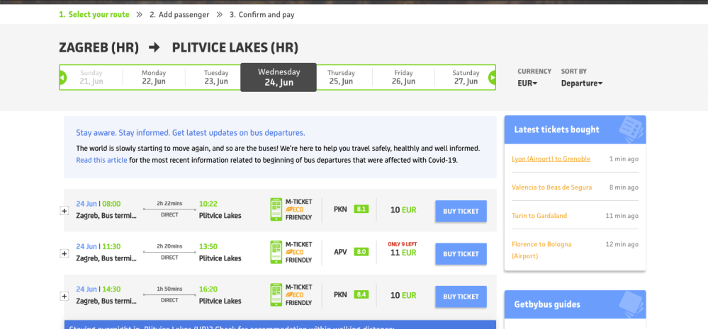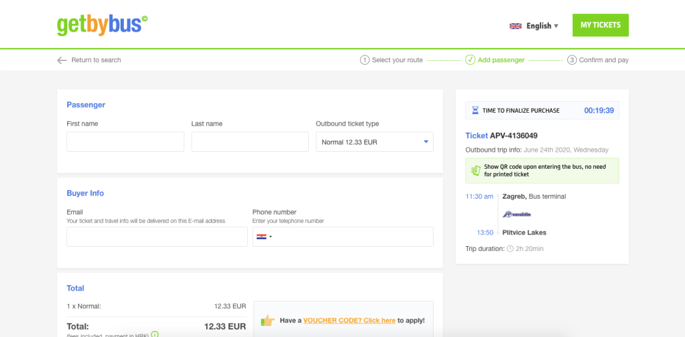 今趟的巴爾幹半島的跨國/跨城市交通,大部分都是乘搭巴士,尋找巴士車票,建議可到Getbybus搜尋,它就如Skyscanner一樣的比格平台,使用方便簡單,有齊不同跨國巴士的時間表與價錢。每次在網站買完車票後,電郵就會收到登車證 (Boarding Pass),上車時只要用電話顯示/列印該QR code,就能成功上車!
